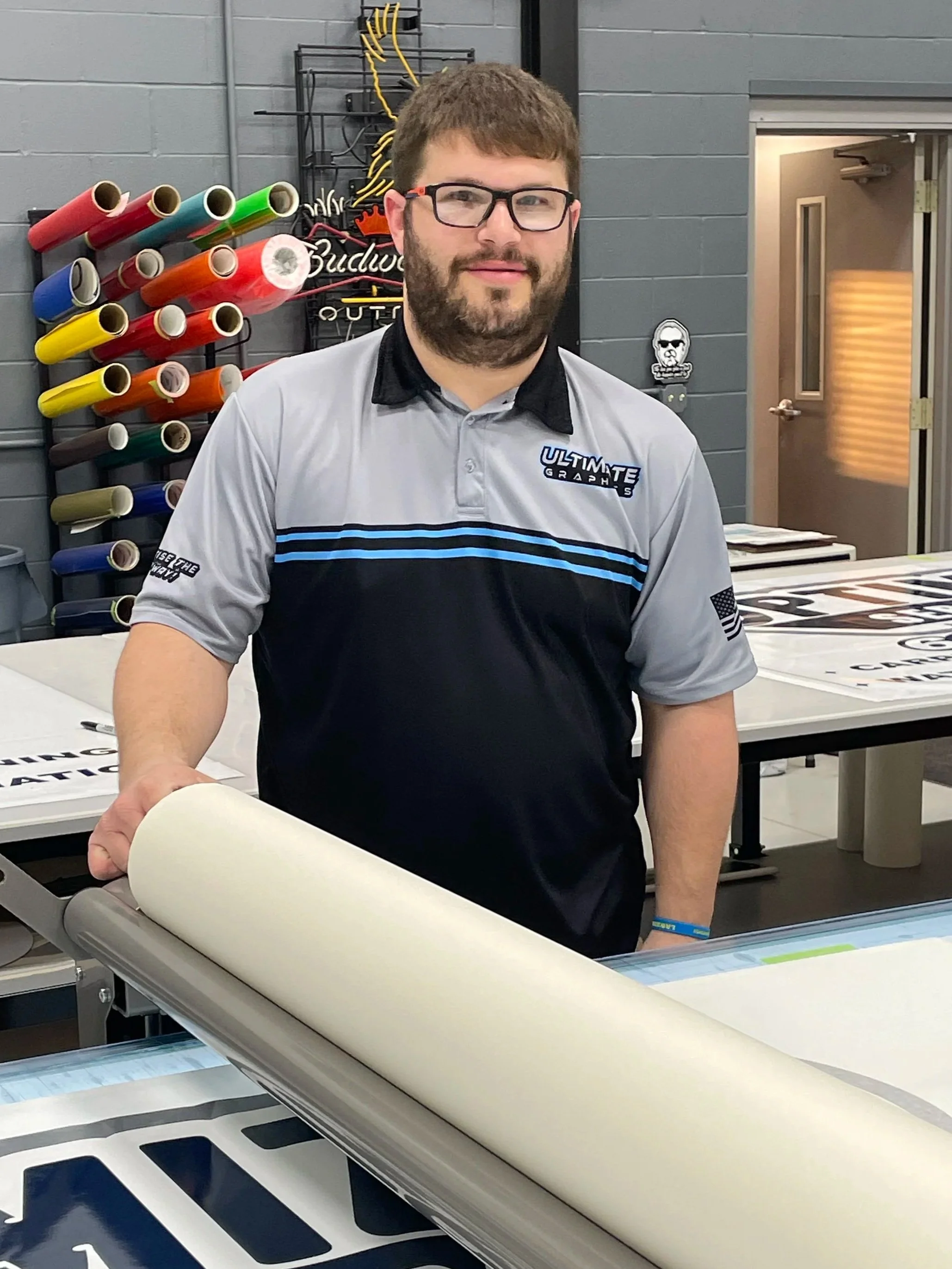 Ultimate Graphics offers a wide variety of advertising products such as custom vehicle wraps, logo designs, and other promotional items. Humphries strives to keep all work done in-house, which allows them to have better quality control during every step of the production process. Over the years, Ultimate Graphics has upped the scale of the vehicles they can wrap. In the beginning, they mainly focused on motorsport vehicles. Now their facility can accommodate a 53-foot tractor trailer, and projects can be taken on no matter the time of year. Humphries' staff will make sure customers get the perfect product, whether it's a small decal or an entire trailer wrap.